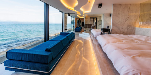 全室オーシャンフロント!ガラス張り露天風呂で癒しの時間を♪