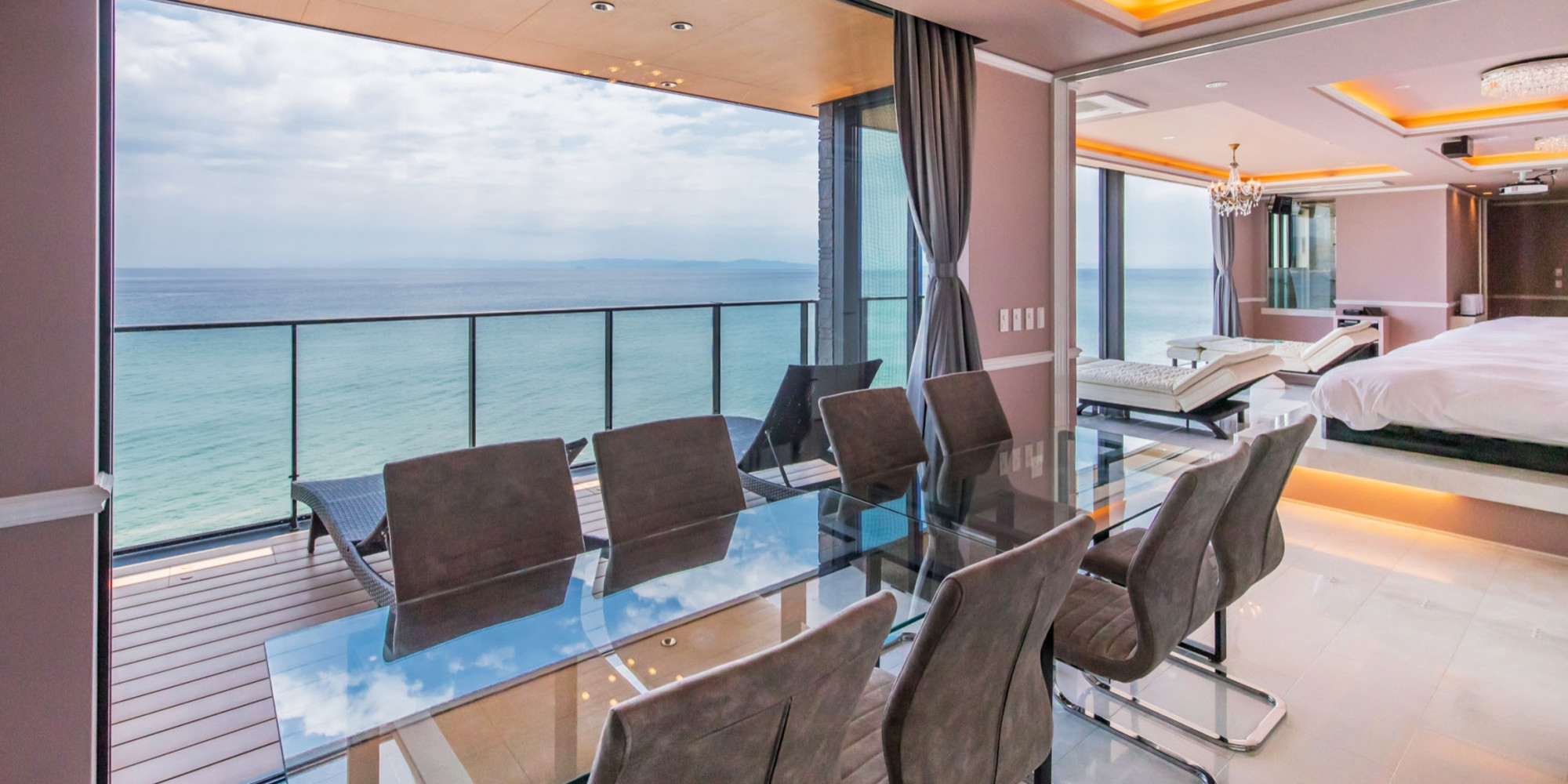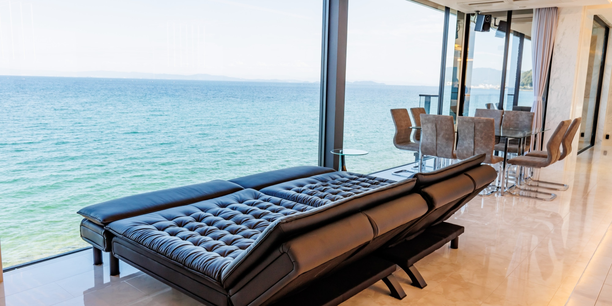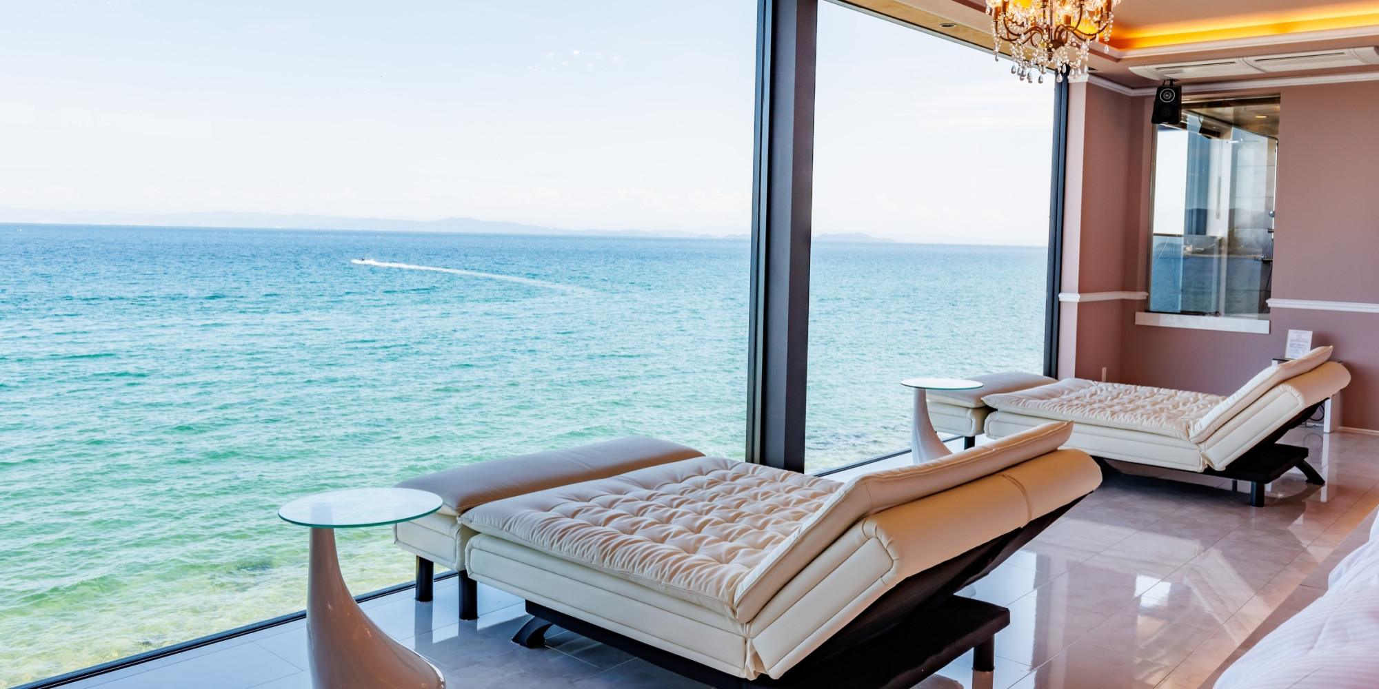 全室オーシャンフロント!ガラス張り露天風呂で癒しの時間を♪