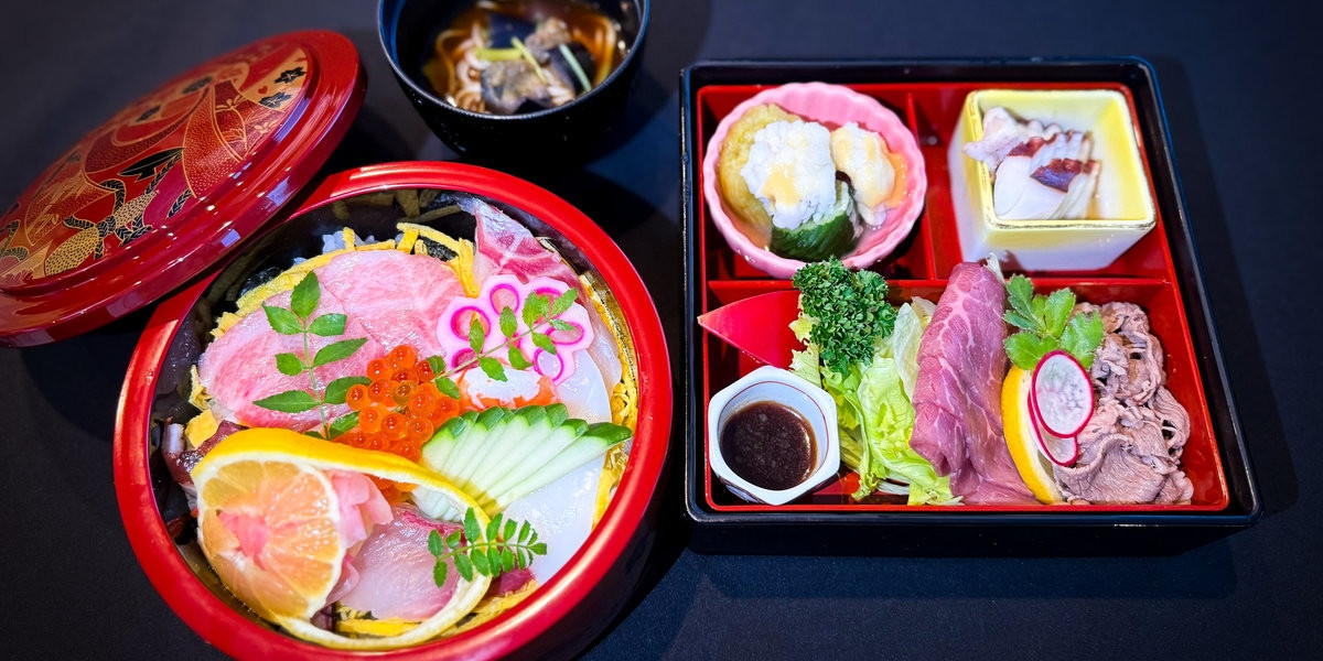 部屋食(海鮮ちらし寿司&淡路牛ローストビーフセット、うなぎの白焼き丼&淡路牛ローストビーフセット)※2日前までの予約が必要です。