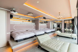 壁紙に上品なピンクを使用したデザイナーズルーム