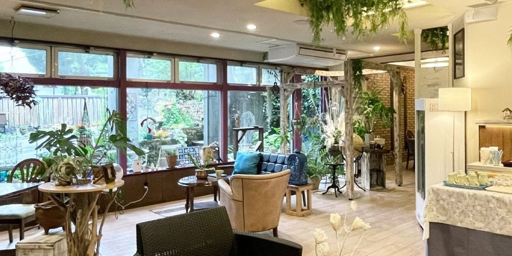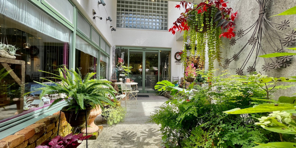 たくさんのインテリアグリーンに囲まれたフリースペースやこもれびテラスで、フリードリンクをお召し上がり頂けます。