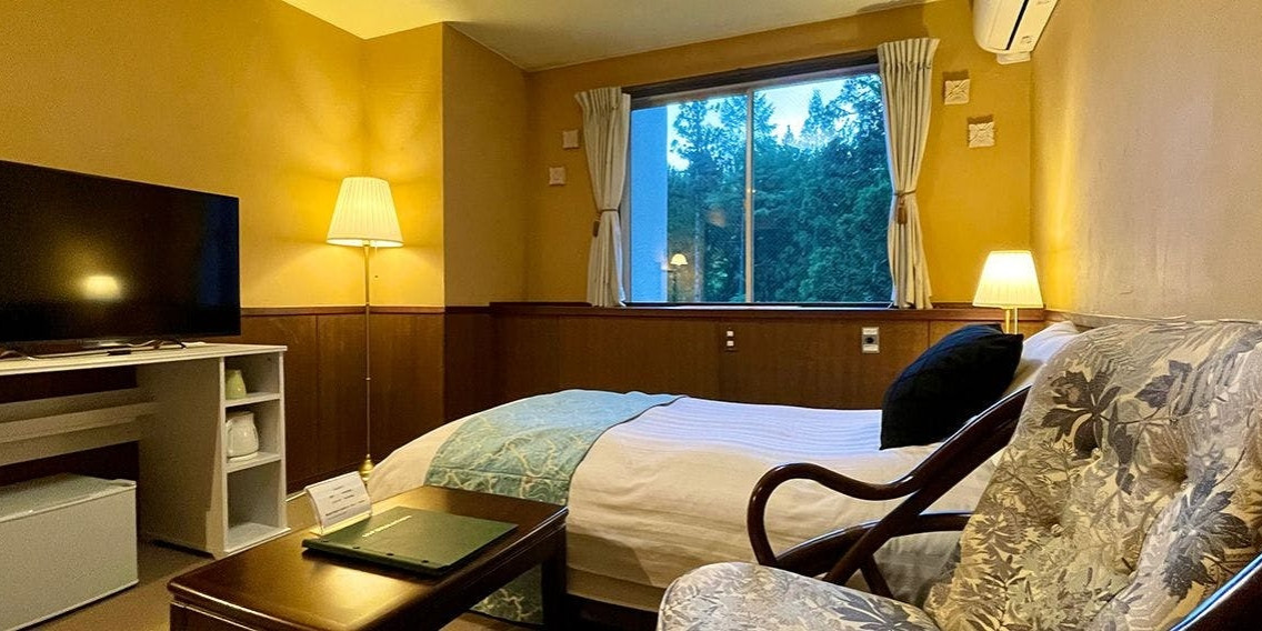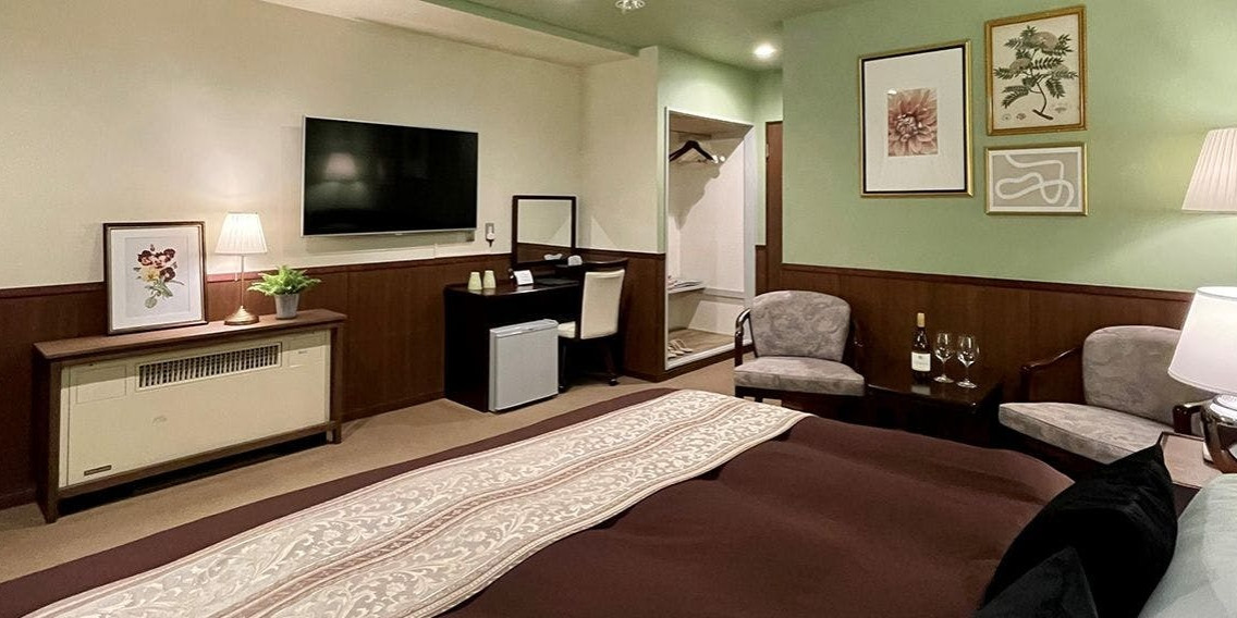 落ち着いた雰囲気のインテリアで統一された洋室。冷暖房完備で、夏も快適にお過ごし頂けます。