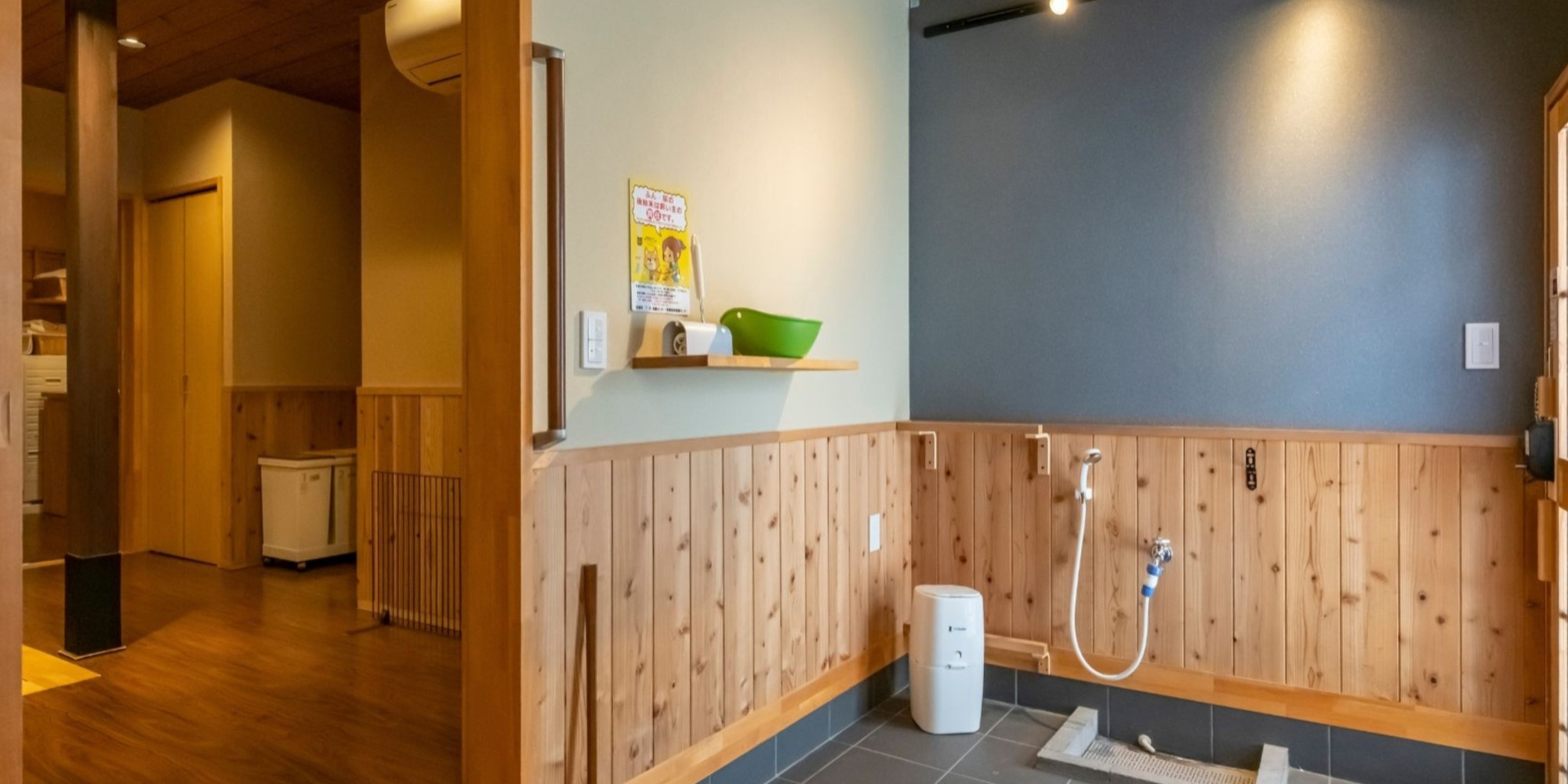 玄関にはペットの為の足洗い場もあり、ペット用のお風呂もご用意しております。