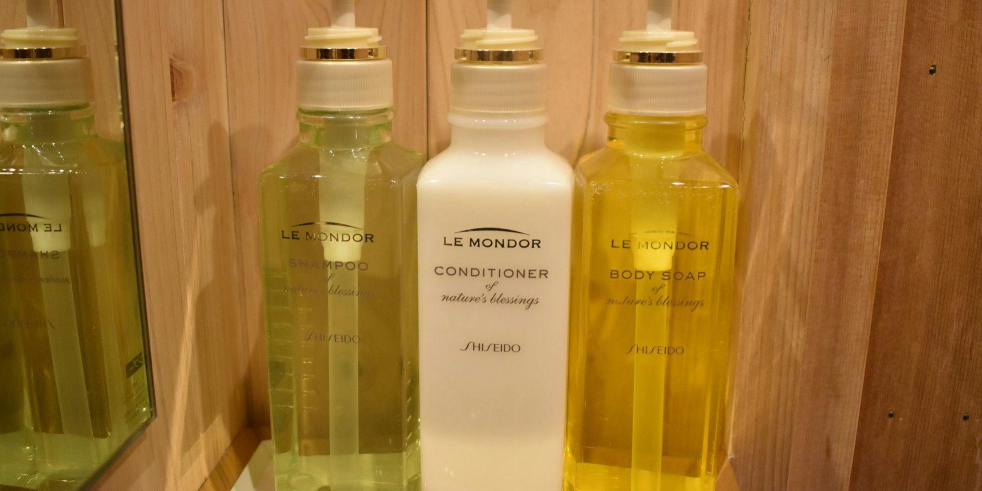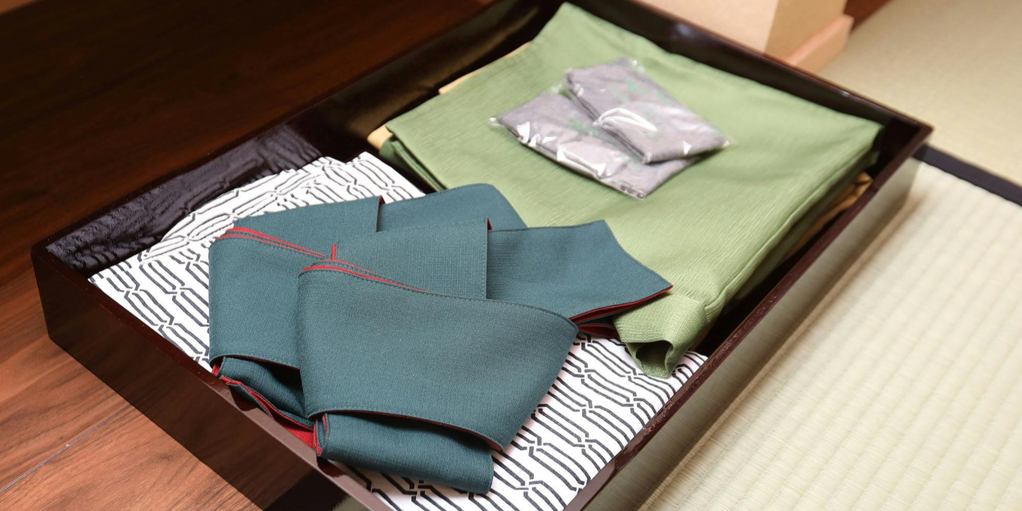 浴衣、シャンプー・コンディショナー・ボディソープ・ハンドソープ・歯ブラシセット・カミソリ(シェービングクリーム付)