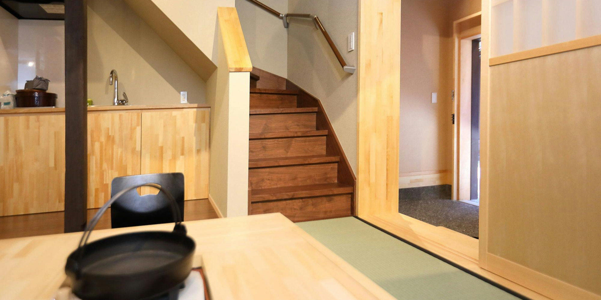 丹波口駅徒歩約10分、京都囲炉裏と半露天風呂がある一棟貸しの町家宿