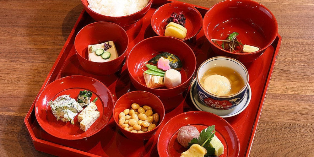 古くから伝わる「精進料理」では、仏の教えによって肉類魚介類を使用せずに、穀物、豆類、野菜などの食材だけを使用したお料理です。