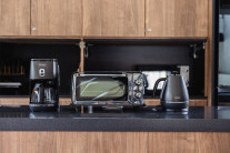 最新キッチン設備完備、調理道具、食器、グラス類完備、洗濯機、乾燥機、スキーロッカーも2つあります。