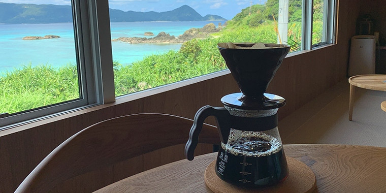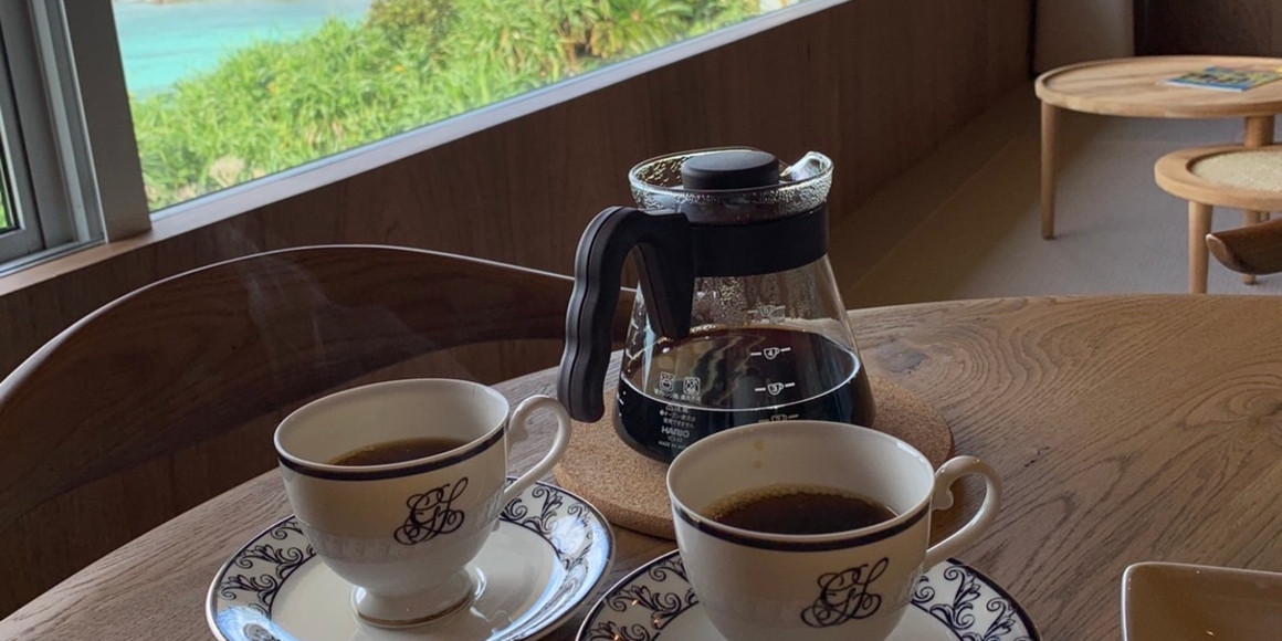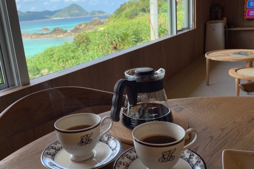 海を見ながら地元で評判のコーヒー屋さんのこだわり焙煎の一杯を。
