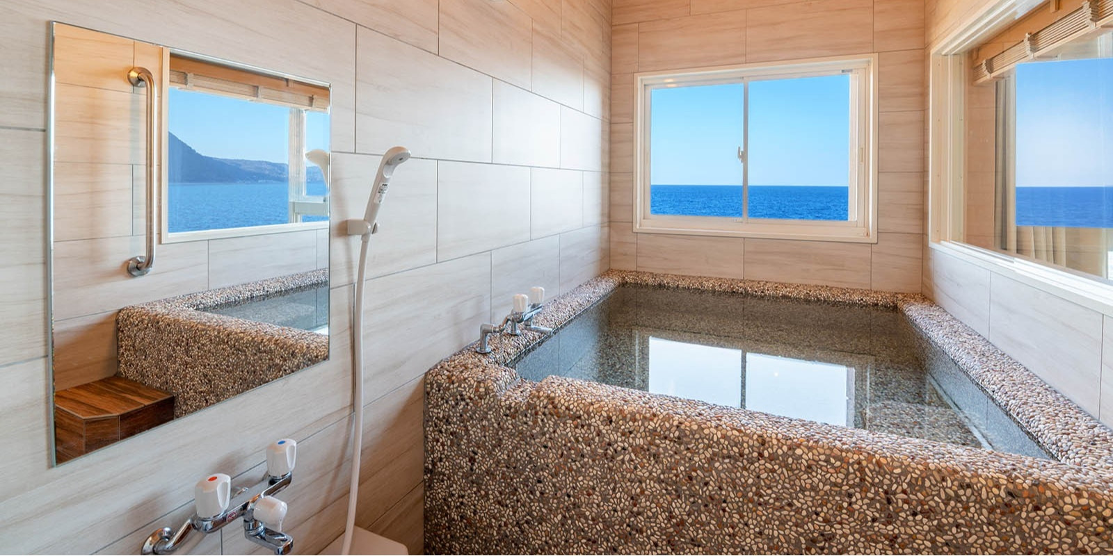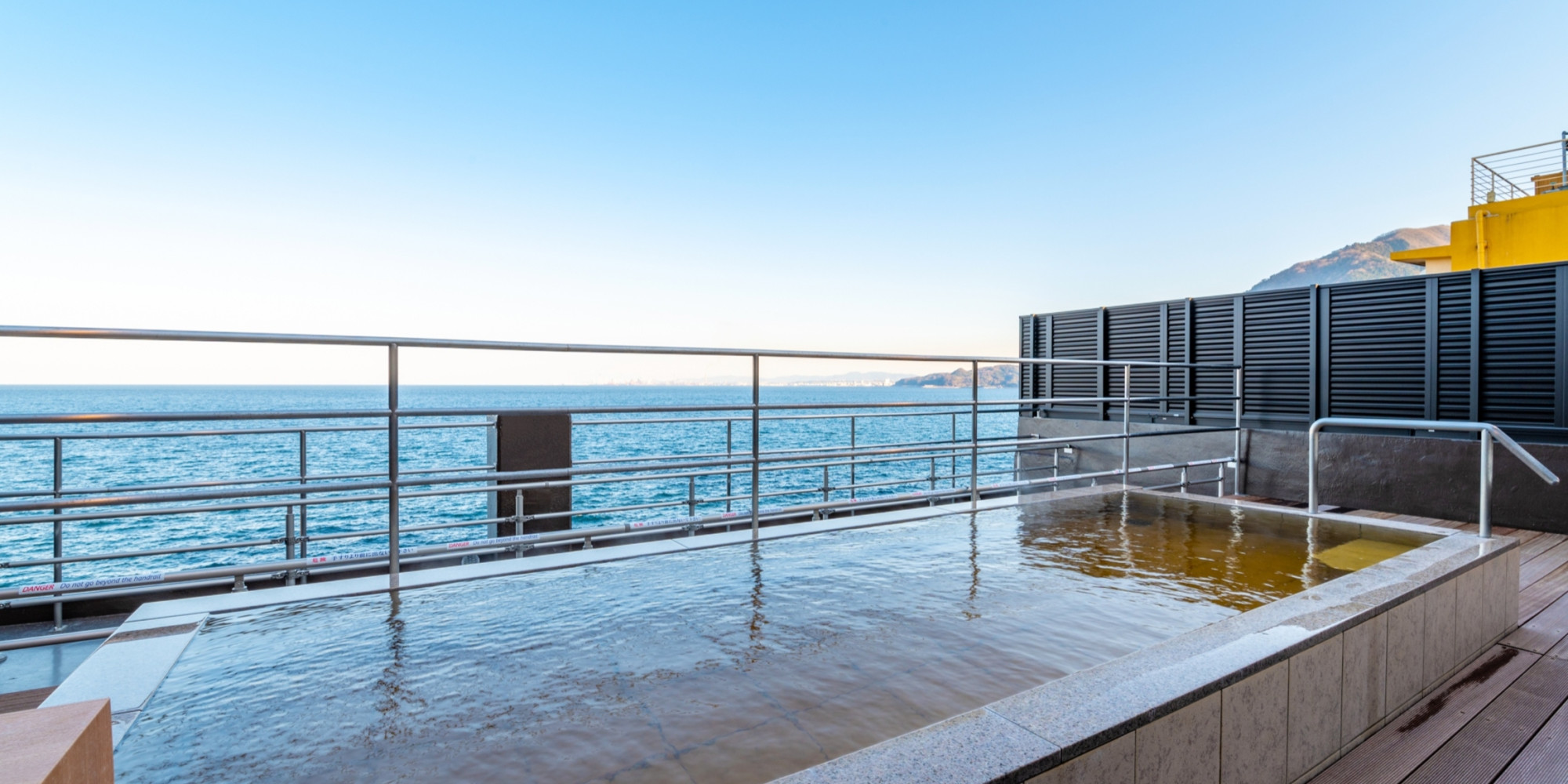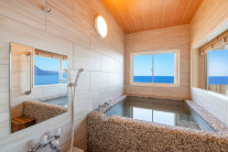 海と空に浮かんだような気分になる陶器風呂で大切な人とプライベートなひとときをお過ごしください。
