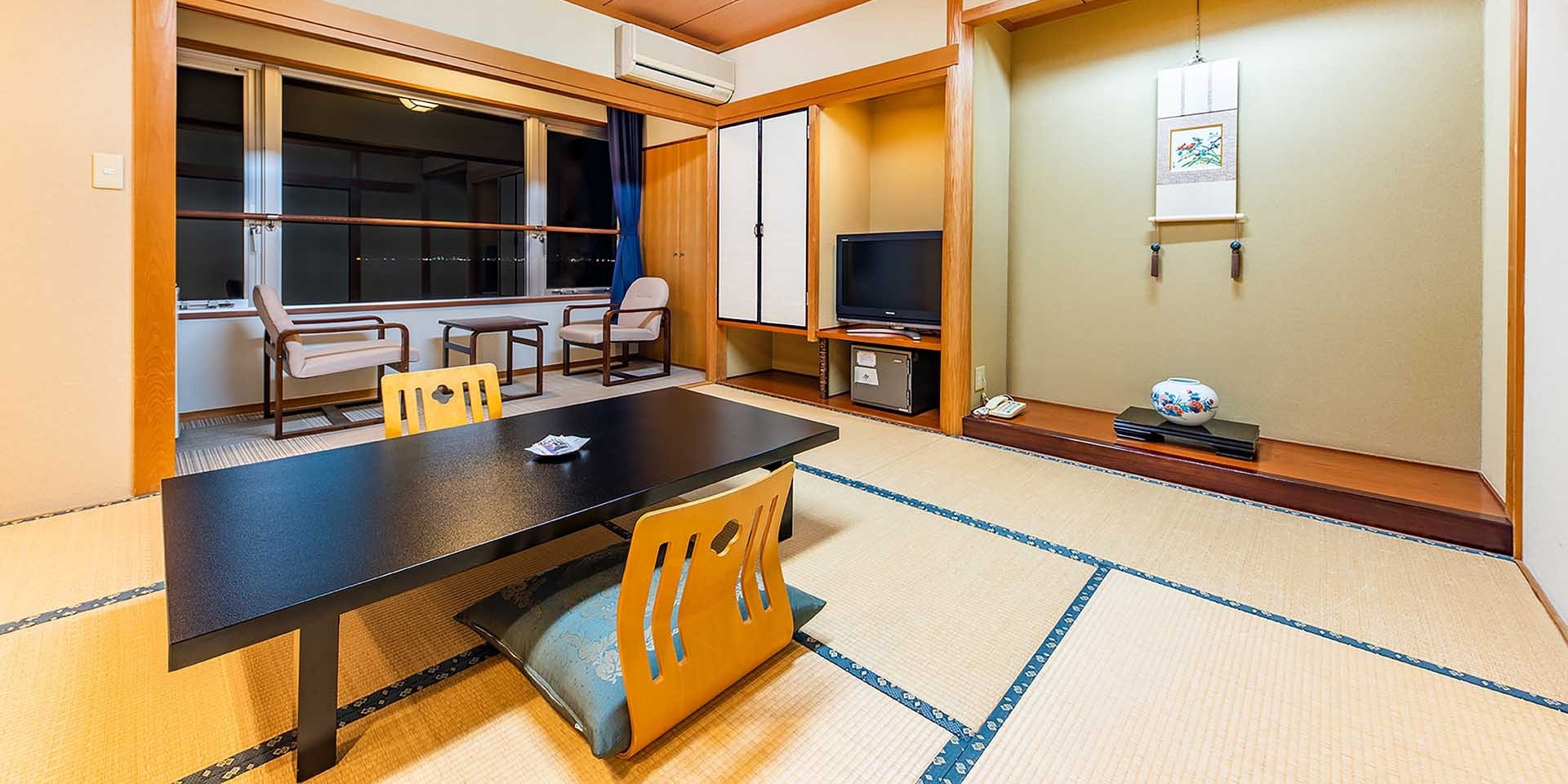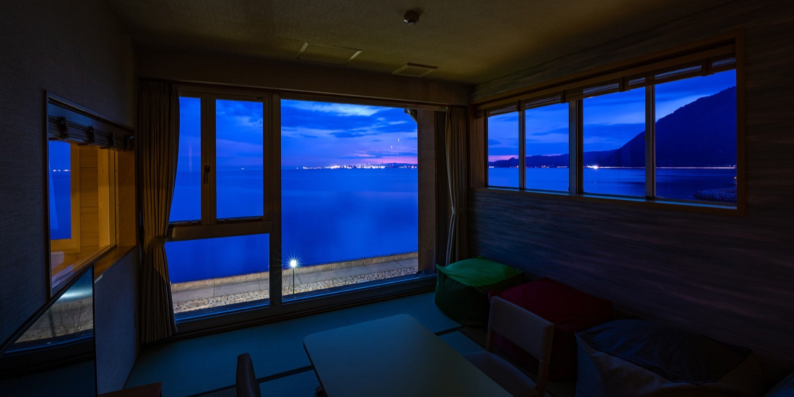 、広々としたお部屋の窓いっぱいに別府湾の景色が広がるお部屋です。