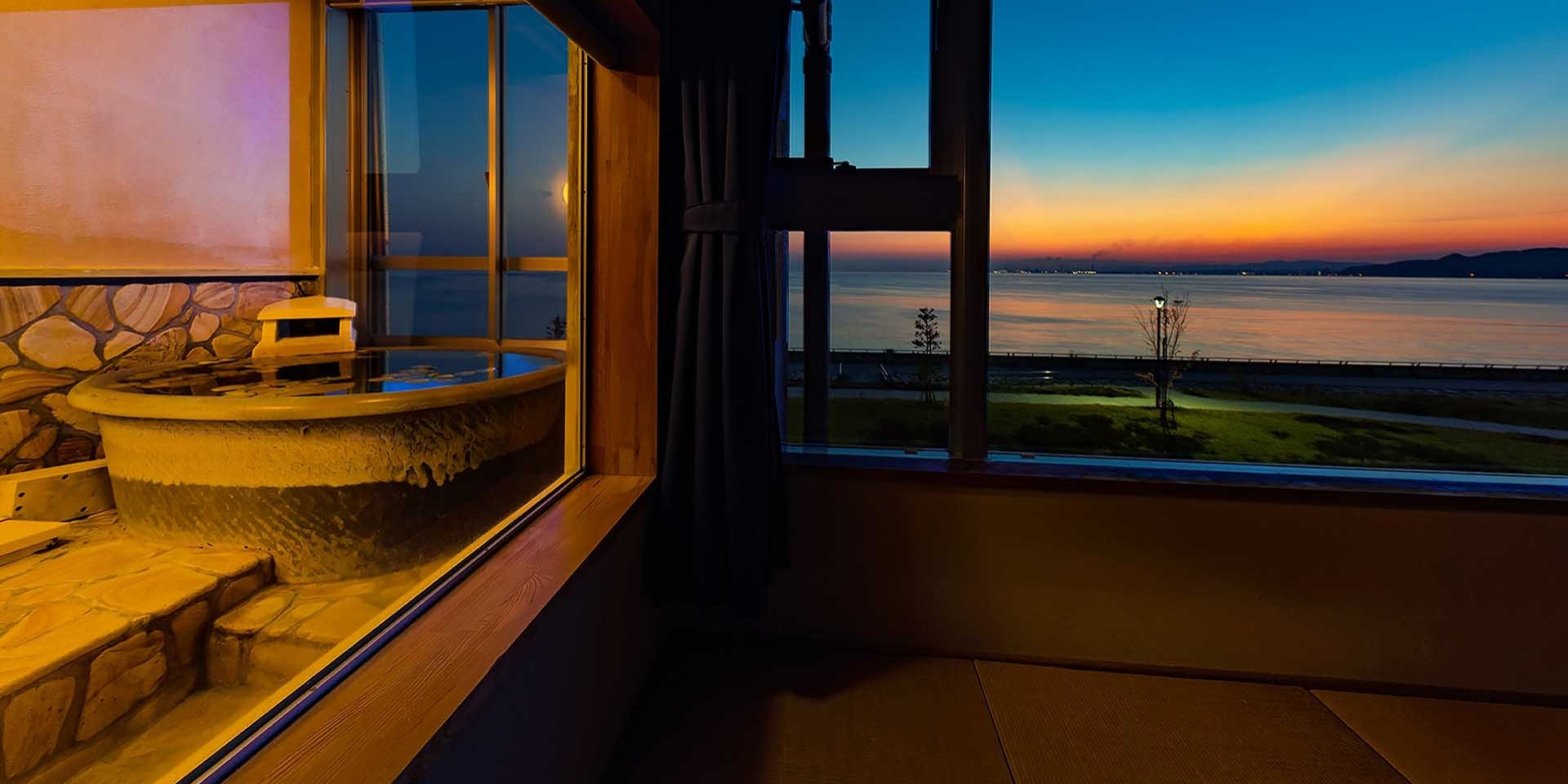 その湯名のとおり、朝日を眺めることができ、別府湾から昇る荘厳な朝日の美しさは、