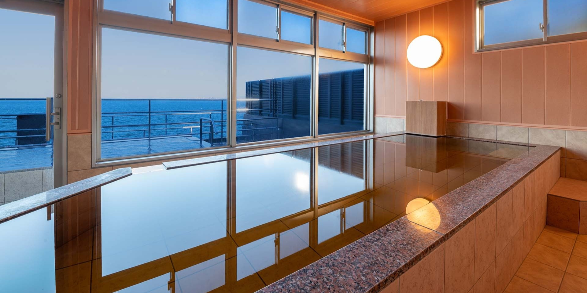 最上階にある当宿一番の魅力の展望露天風呂や展望大浴場、