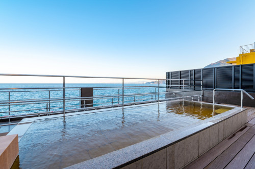 別府湾に面した『源泉かけ流しパノラマ絶景』を楽しめる新設7階大浴場と露天風呂、サウナが人気の宿。