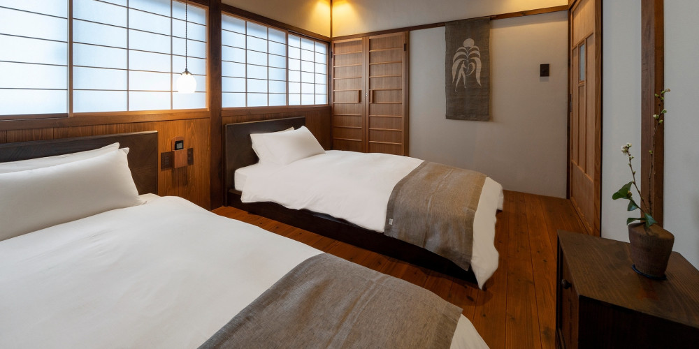 和室には伝統工芸品の能登上布のタペストリーがかけられています。