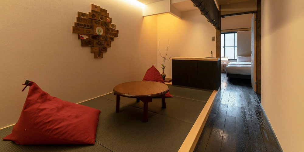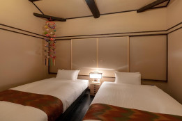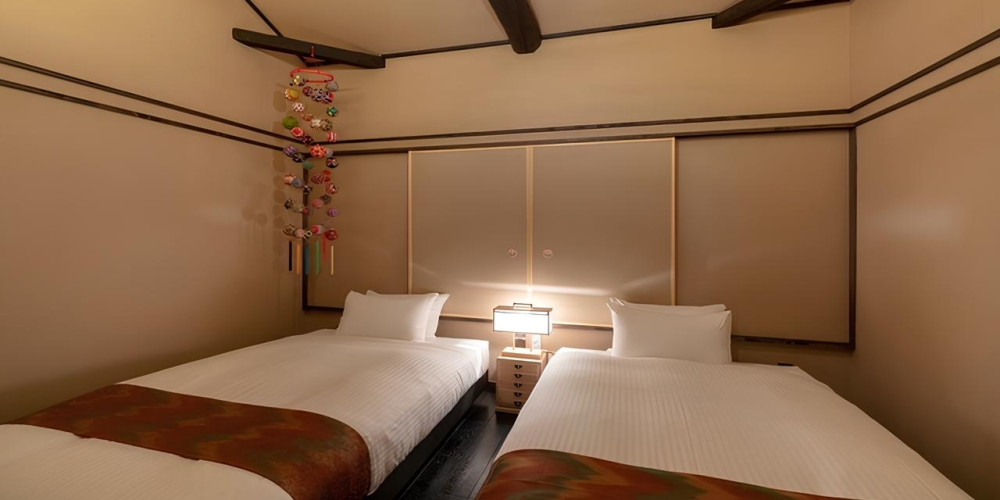 可愛らしい手毬のモチーフが散りばめられた広々町家宿。
