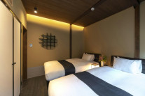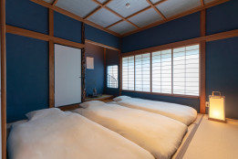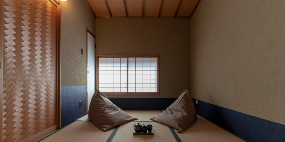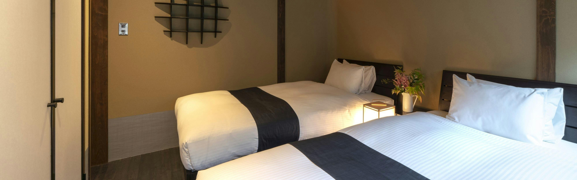 本来は、町家の天井に見られる網代編みを扉に施した和寝室。茶室のような落ち着いた雰囲気の中でお過ごしいただけます。