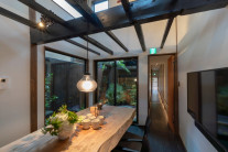 町家内外のいたるところに建物・空間を美しく見せる照明が施され、モダンで落ち着いた印象を与えます。