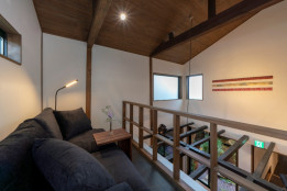 ダイニングから階段を登った先に広がる、大きなソファのあるロフトエリア。