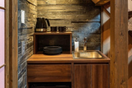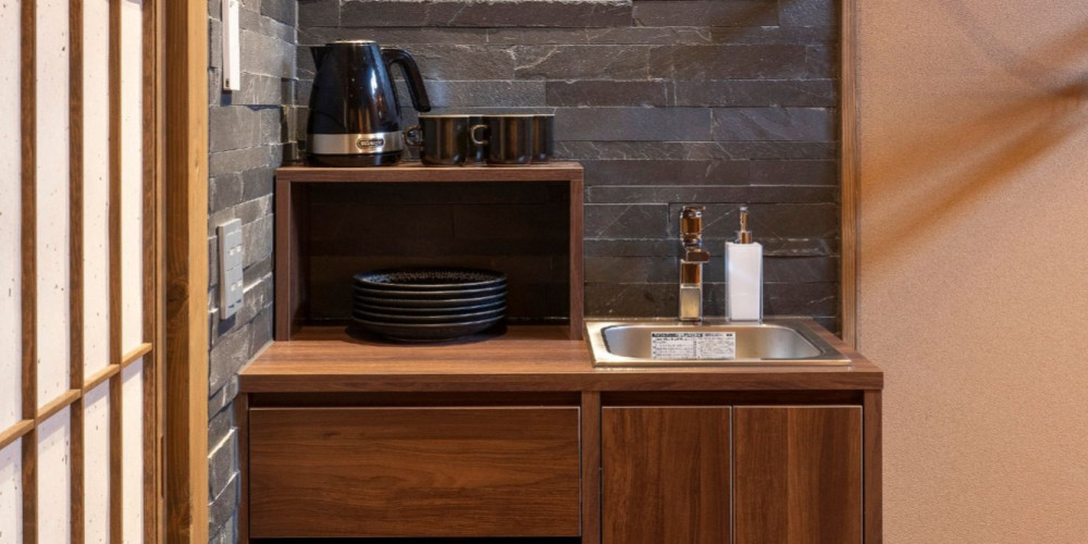 冷蔵庫・シンク・電気ケトルなどを備えます。