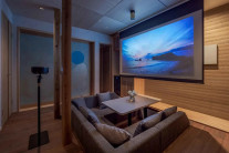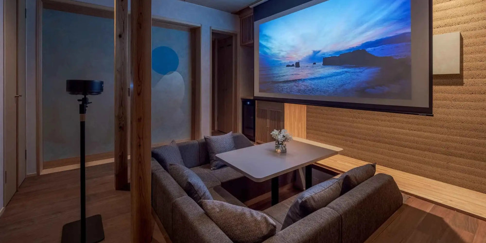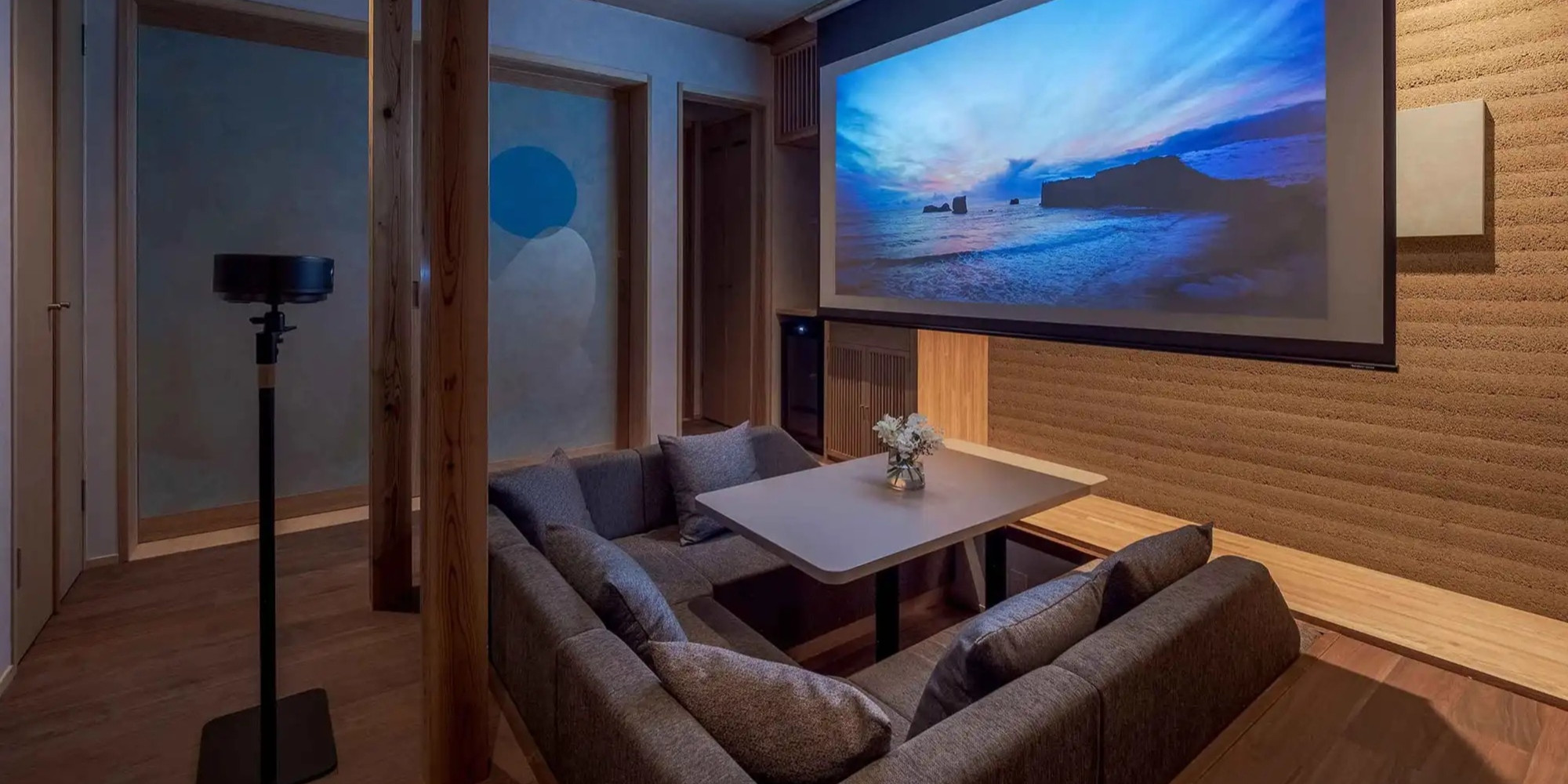 大画面で大迫力の映像と音響を楽しめるプロジェクターを完備。