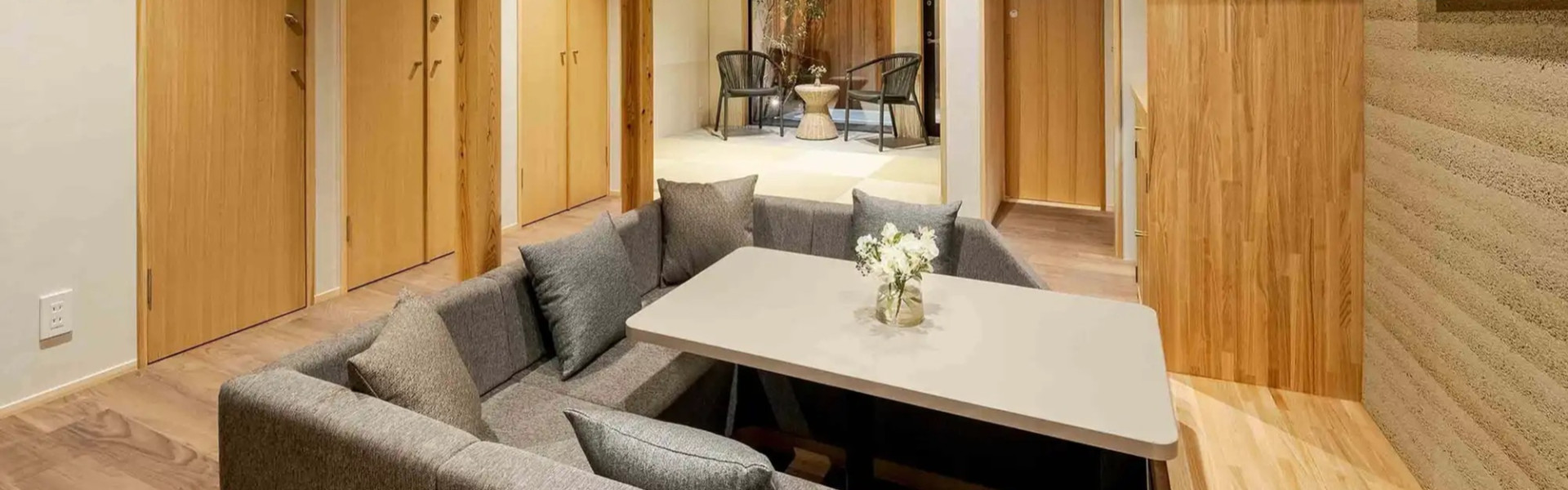 穏やかな風のように、四季折々の時の流れを感じられるくつろぎの空間へとリノベーションした完全プライベートな町家(町屋)宿。