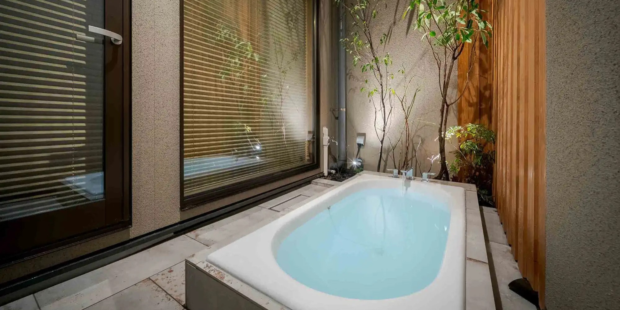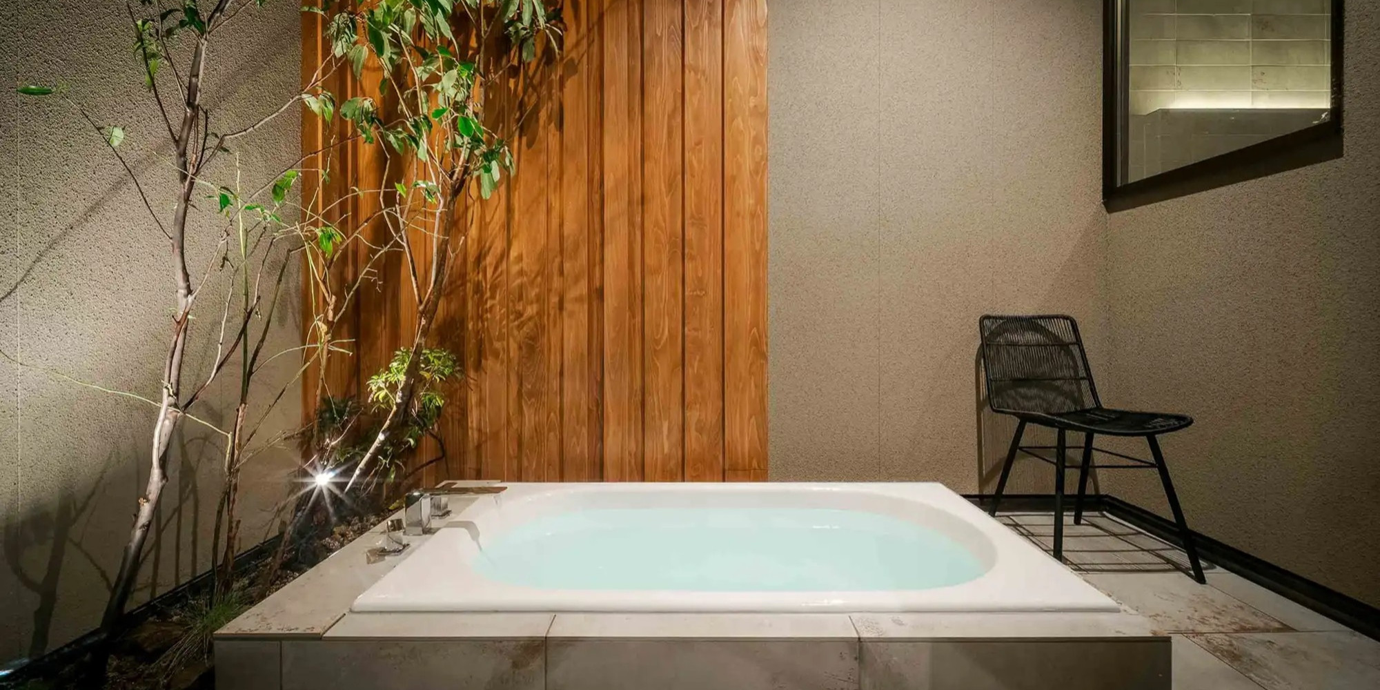 街中に居ながら、非日常感あふれる露天風呂気分で特別なバスタイムをご堪能いただけます。