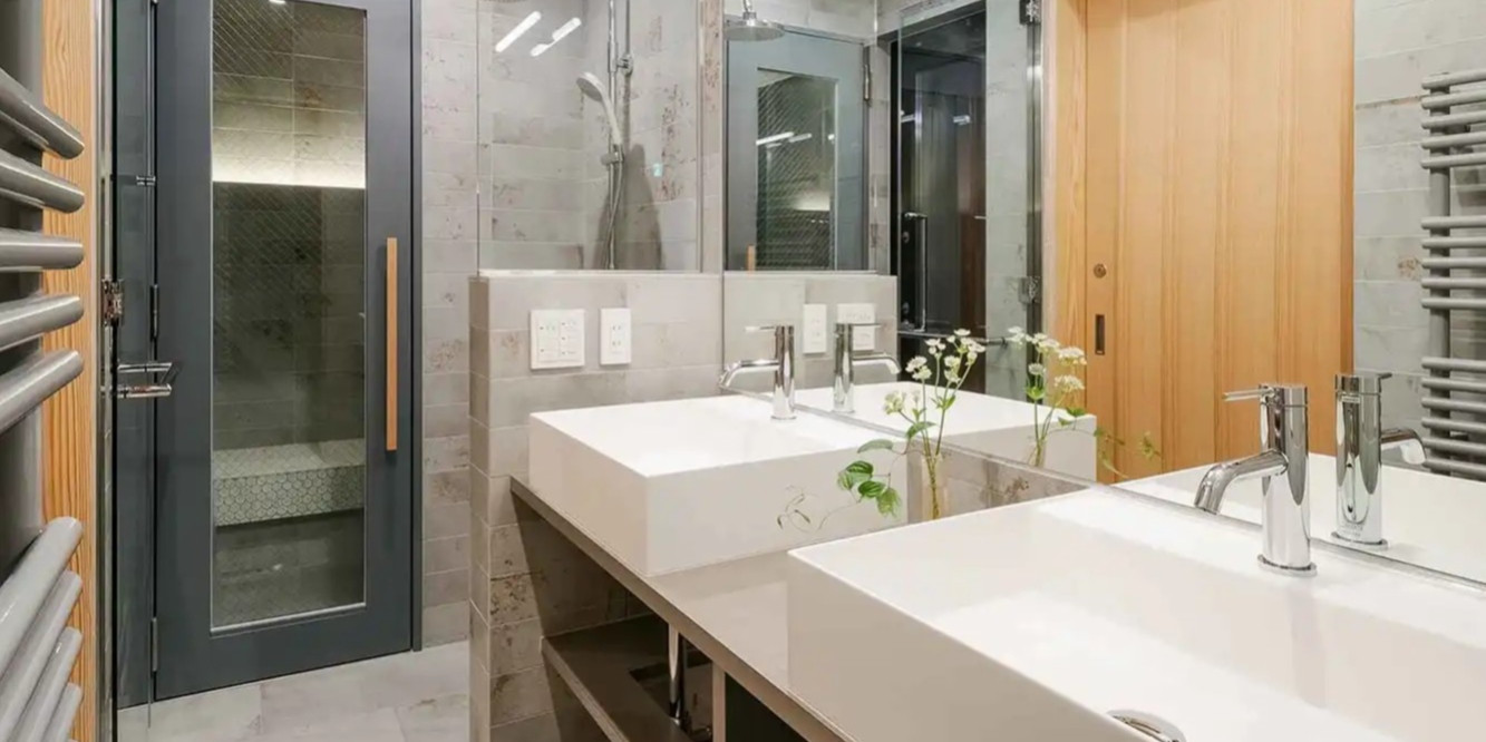 洗面エリアは広く使える洗面2台とタオルウォーマーを完備し、大人数でのご滞在も快適にお過ごしいただけます。