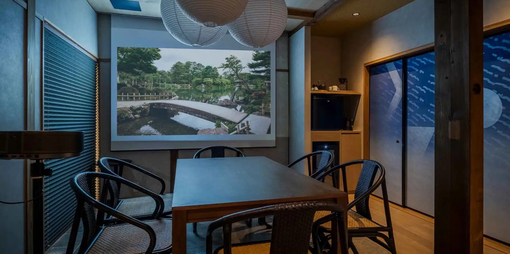 大画面で大迫力の映像と音響を楽しめるプロジェクターを完備し、ゆったりと団欒のひと時を過ごせる空間です。