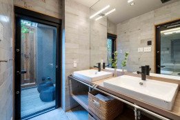 浴室には水風呂専用の浴槽を備え、オーバーヘッドシャワーとあわせて、いつでも自由に「ととのう」体験をご堪能いただけます。