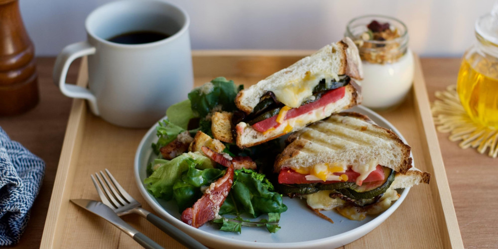 季節ごとに厳選した飛騨高山産の食材を取り入れたパニーニと彩豊かなサラダ。