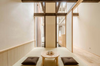 光庭の天窓から自然光が明るく差し込み、畳の上で心地よいひと時をお過ごしいただけます。