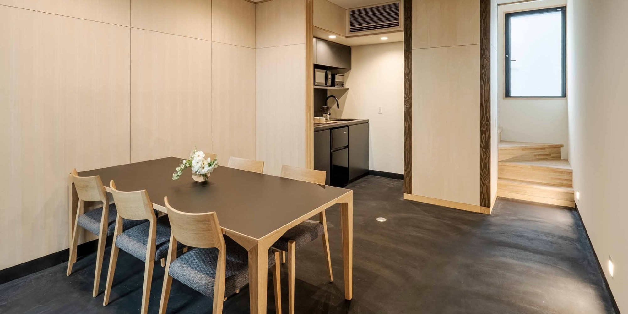 ホテルのスイートルーム以上にゆとりある約103平米で各部屋に空調・床暖房を完備し、最大7名様でのご宿泊や中長期滞在も、お部屋を分けて快適にお過ごしいただけます。