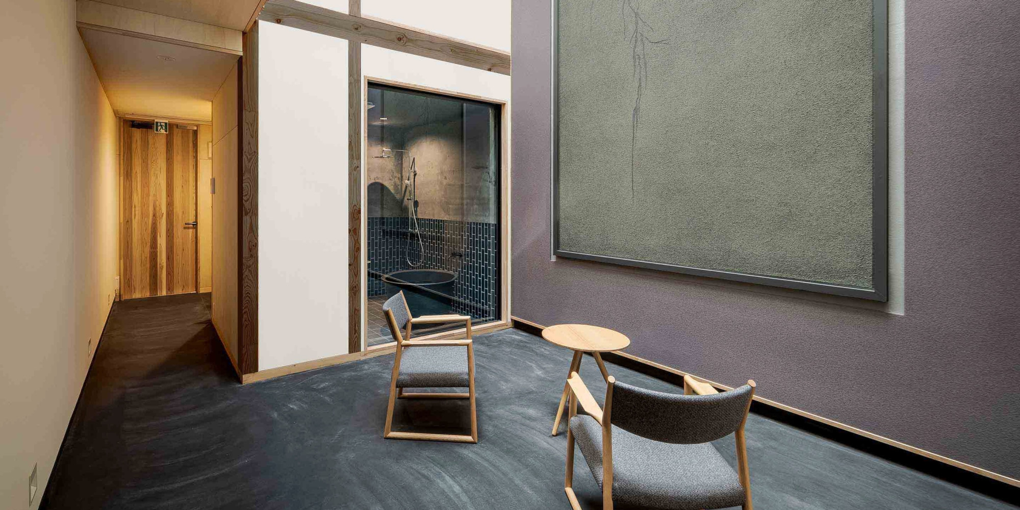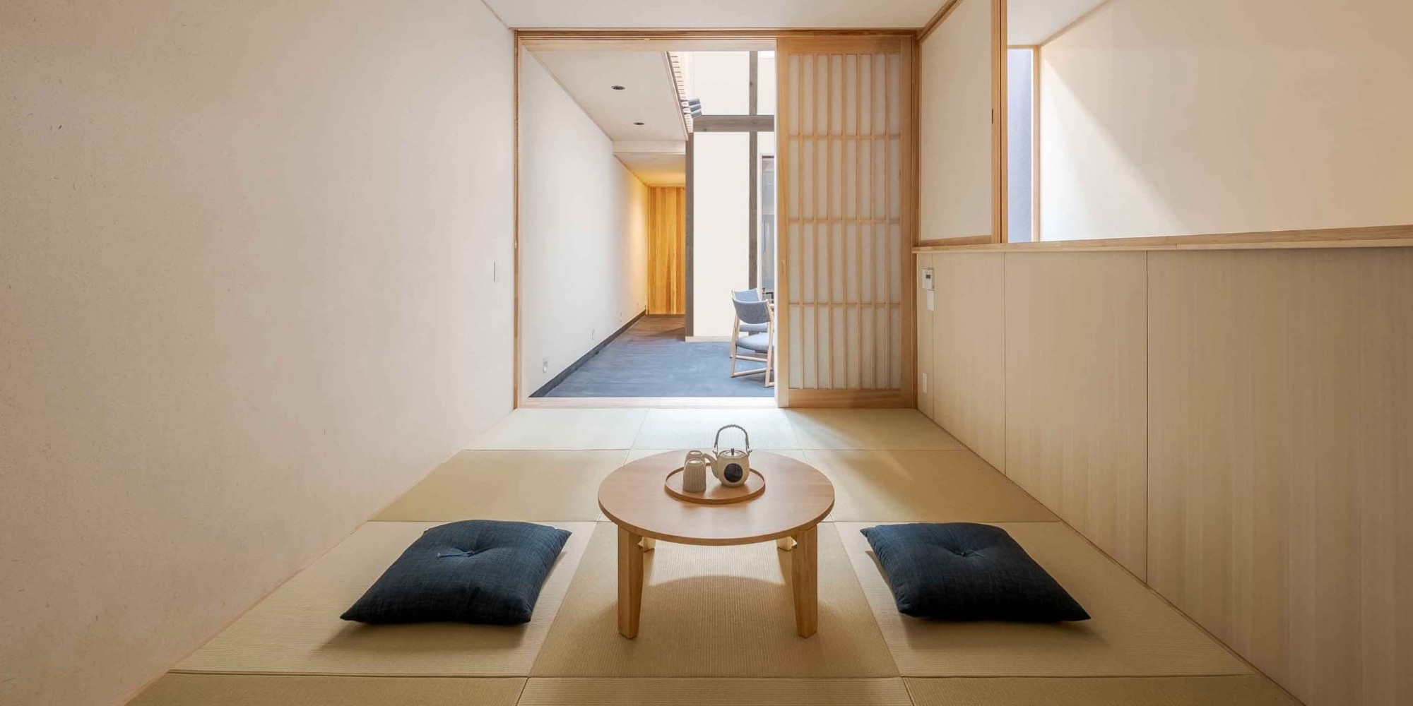 町家の1階には、なごやかな時間の流れを感じる和室と、飛騨高山産のヒノキで作られた大きな浴槽のある浴室と、ヒノキの香り漂うプライベートサウナを完備。