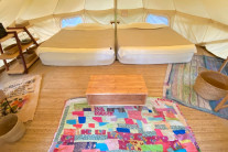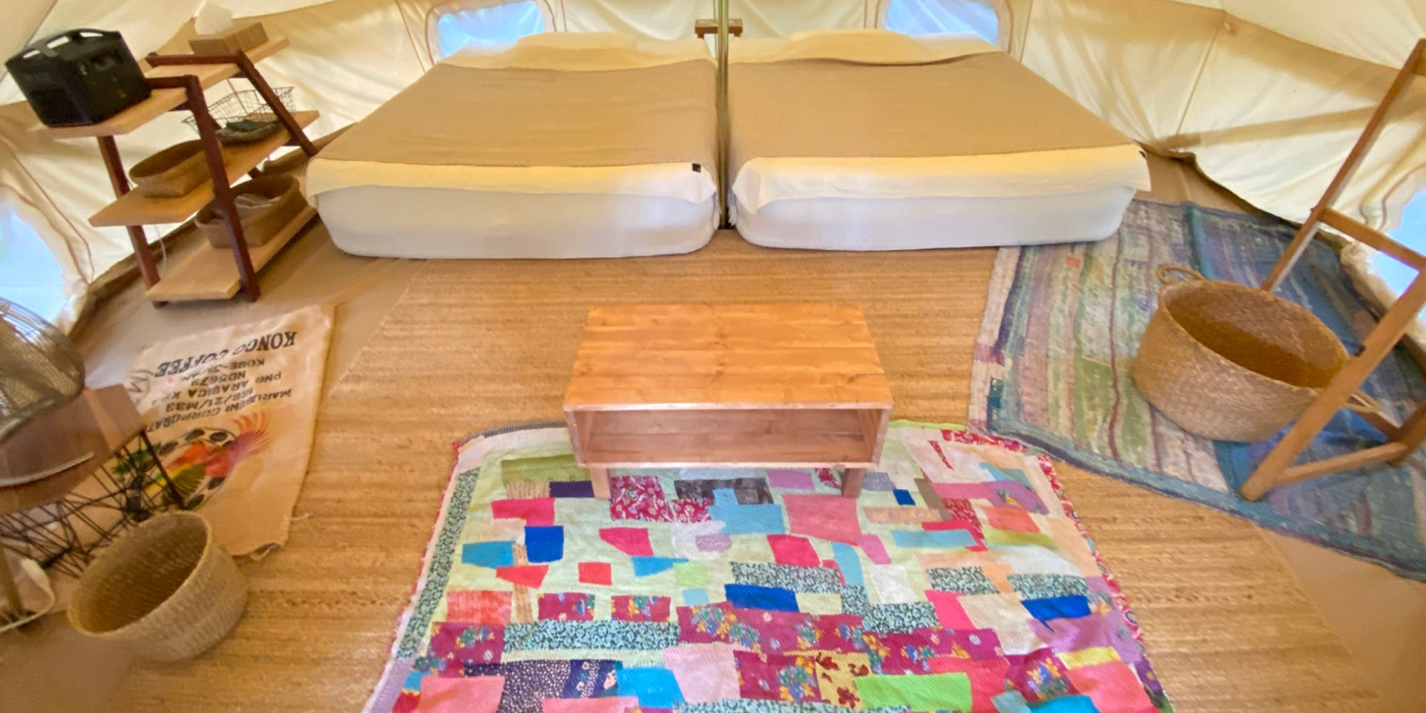 広々テントで自然と一体になる快適空間、晴れた夜には満点の星空を見られるかも