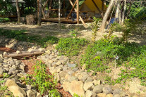 大きなイヌビワやサガリバナの森が広がる敷地内の畑には、