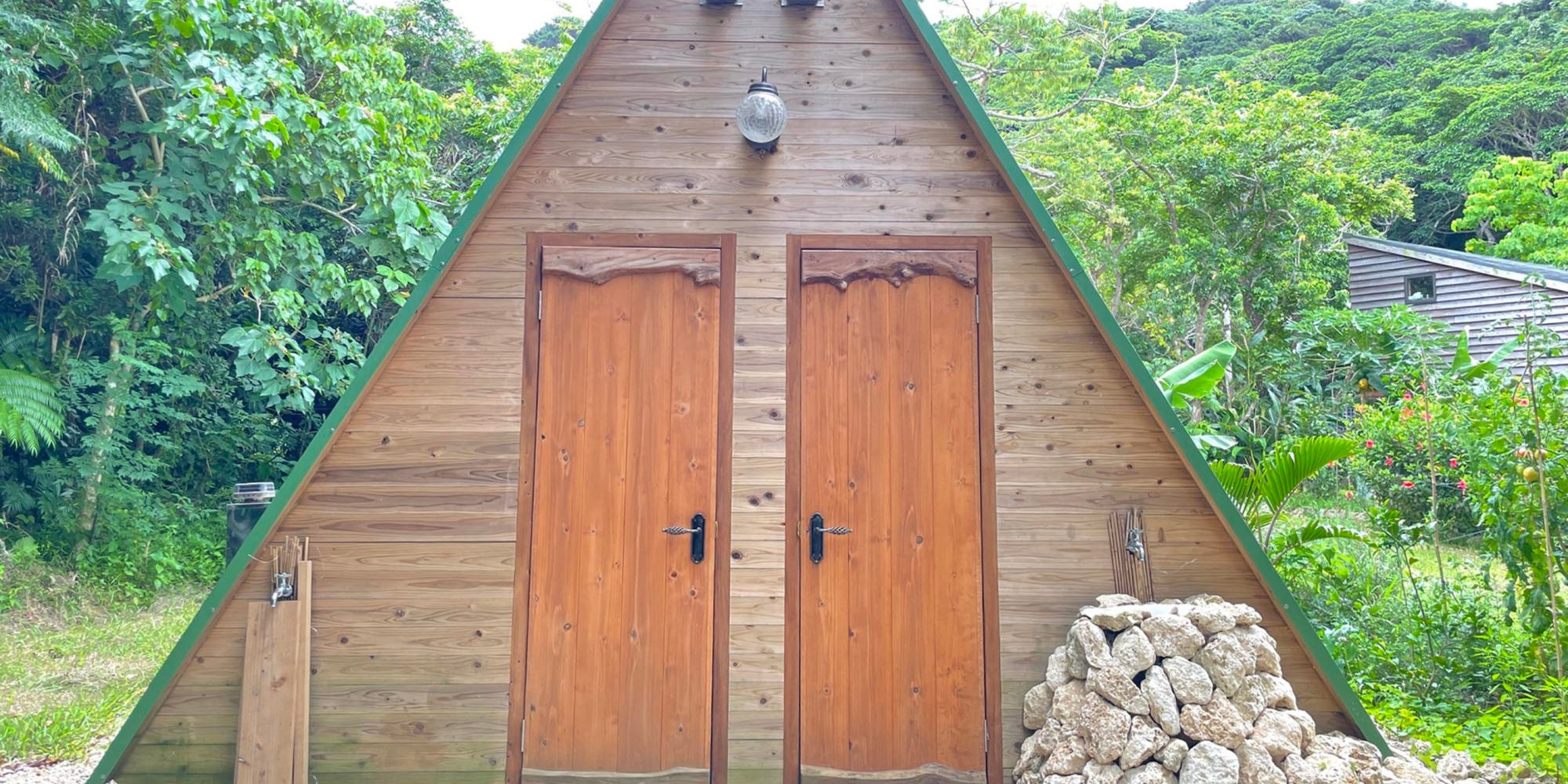 別棟にあるシャワー・トイレは客室専用なので、キャンプ初心者でも安心。
