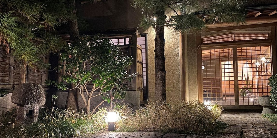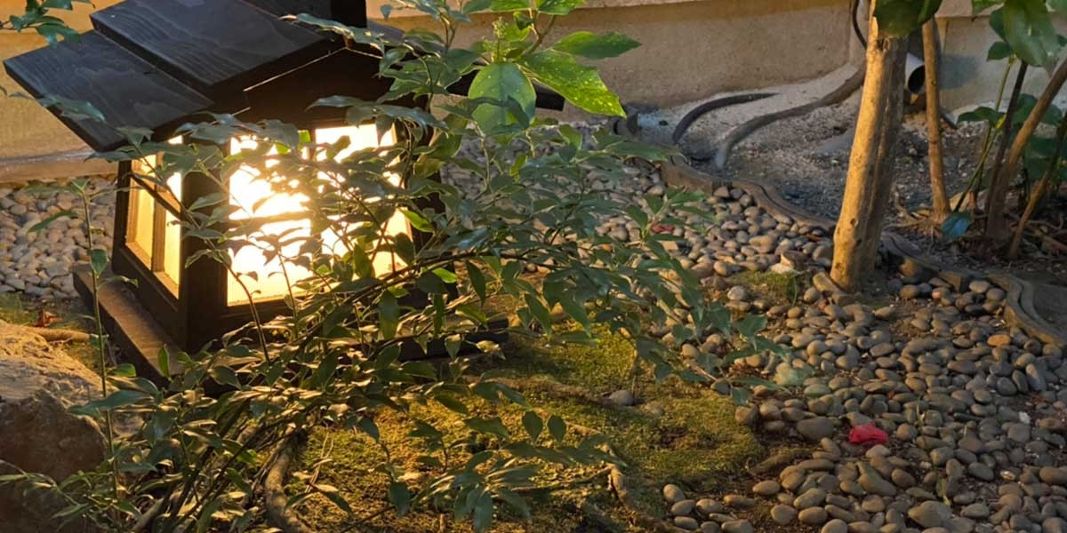心落ち着くやわらかな灯りの館内と趣向を凝らした坪庭。