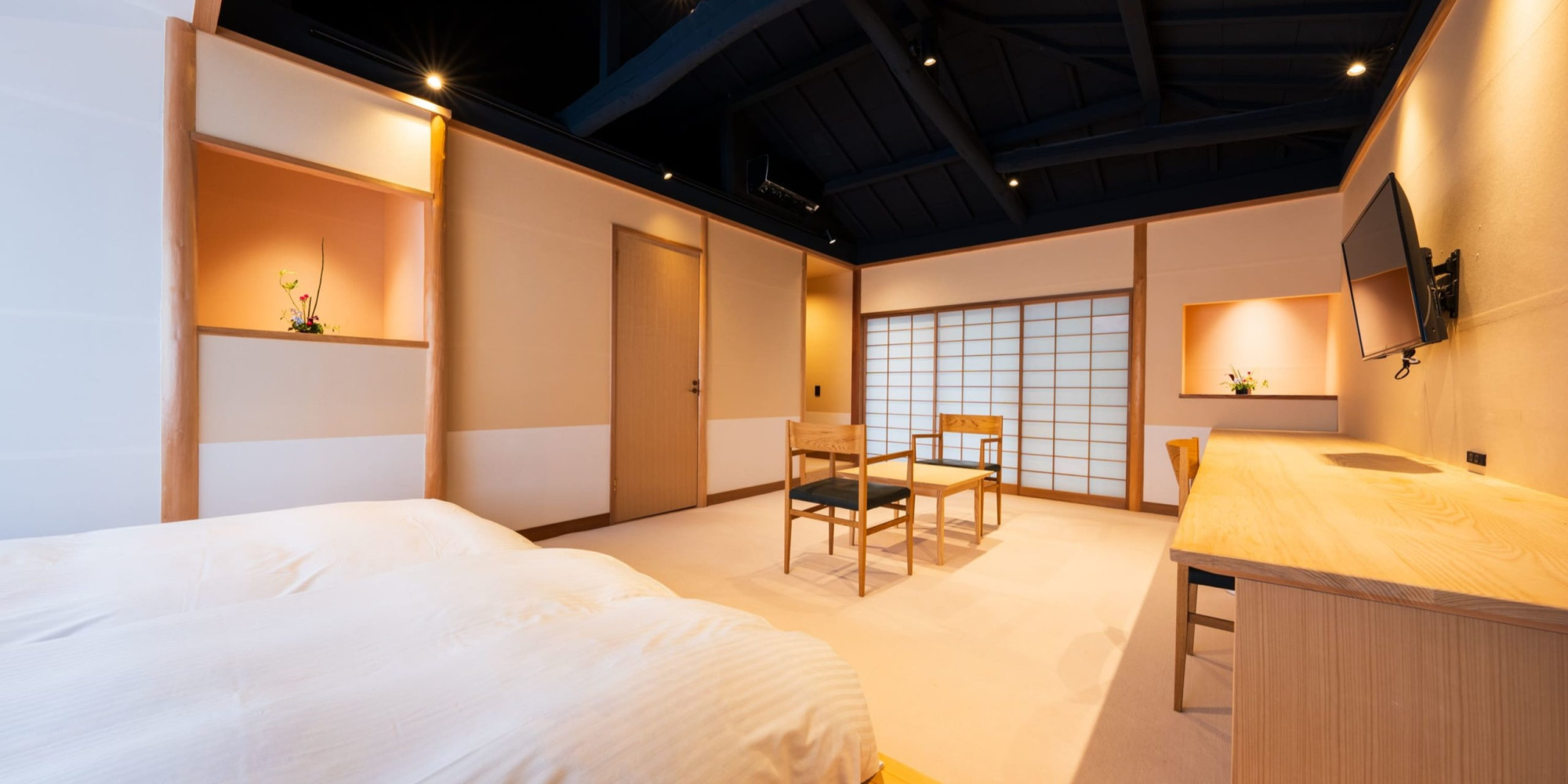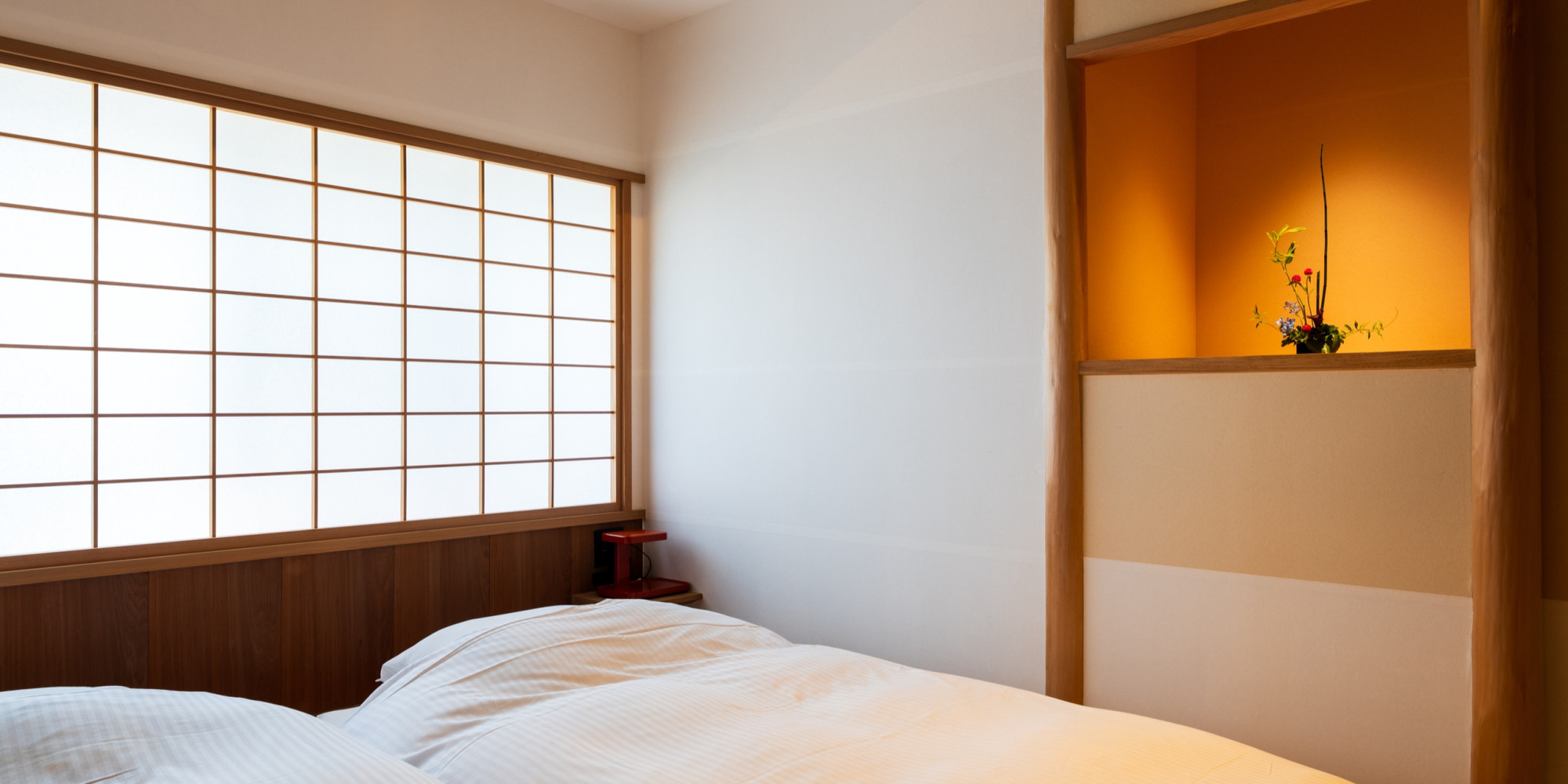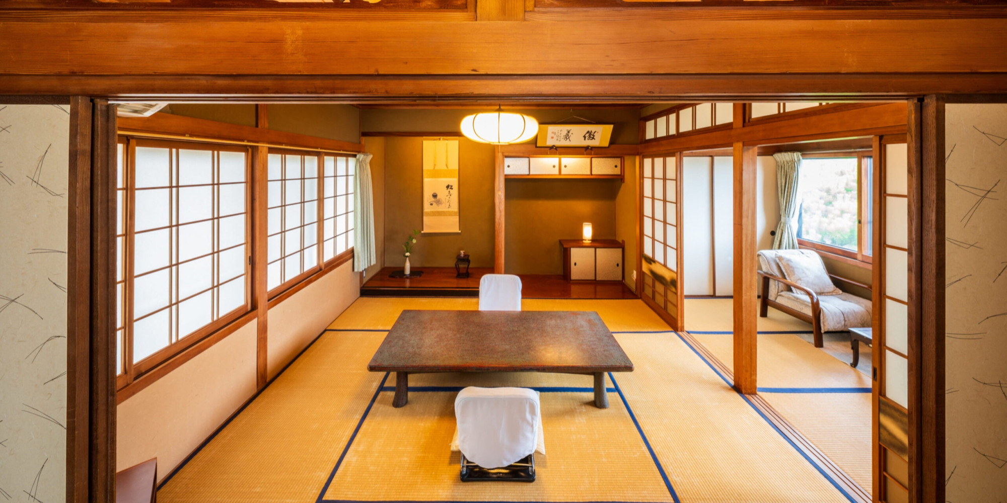 前室や縁側のあるゆったりとした広さがあり、 季節のお花や掛け軸で季節のお花と掛け軸で伝統的な日本旅館の風情を感じていただけます。