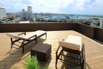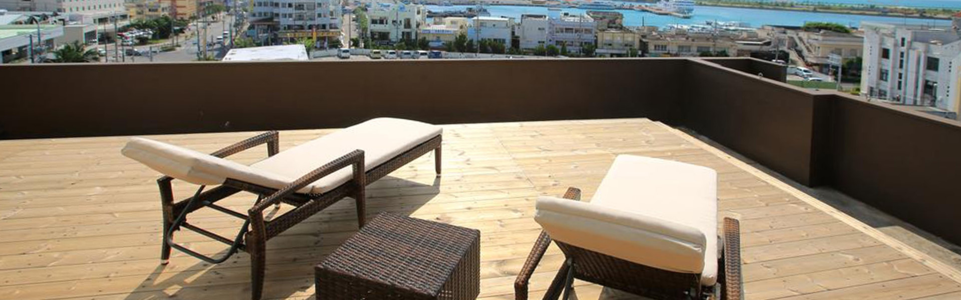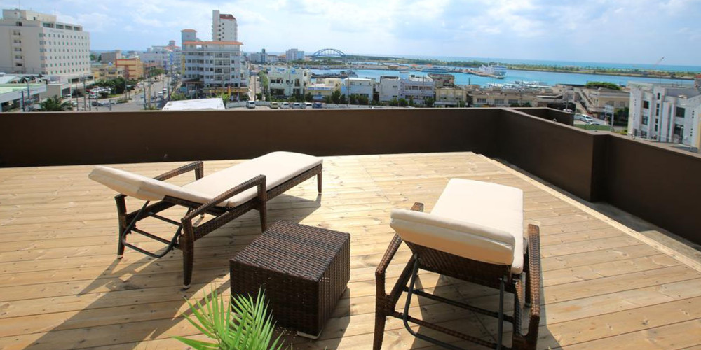 施設内には、石垣島市街地を一望できる「ククルテラス」があり、離島ターミナル越しに広がるオーシャンビューが魅力です。3階にはコインランドリーやアイロンを完備しており、少ない荷物での旅行にも対応可能。1階にはダイビング機材専用のドライルームや、チェックアウト後も利用できるシャワールームを備えています。