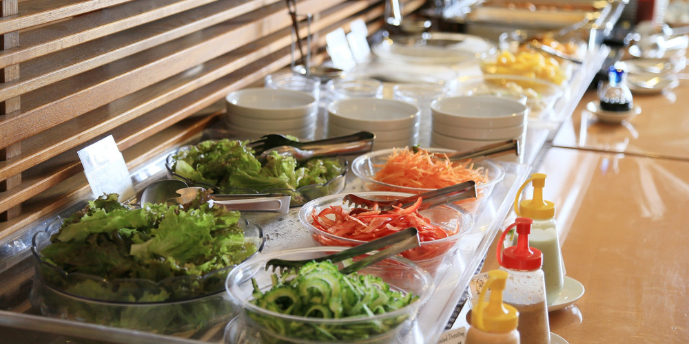 ホテルククルのフロントでスカイククルでの宿泊者名をお伝えいただき朝食会場へ。