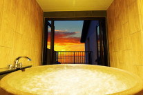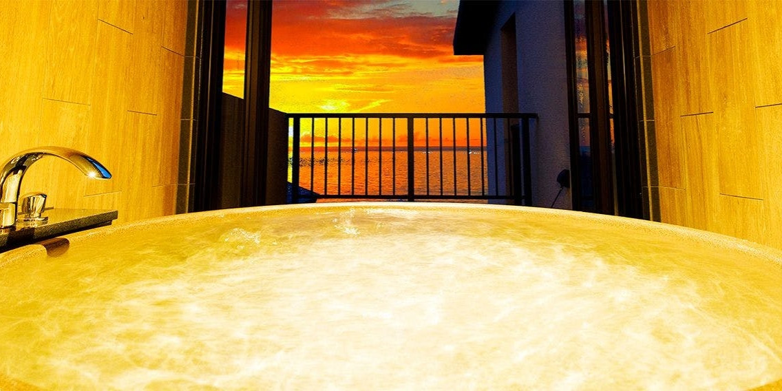 黄昏時にはオレンジに輝く海を望める非日常の空間に。贅沢なひとときをお楽しみください。