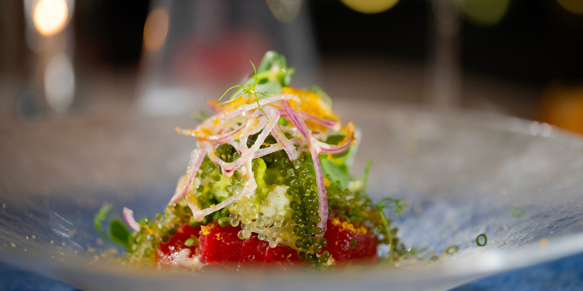 琉球食材を使用した美食に舌鼓を打ちながら、盛りつけの美しさもぜひお楽しみください。