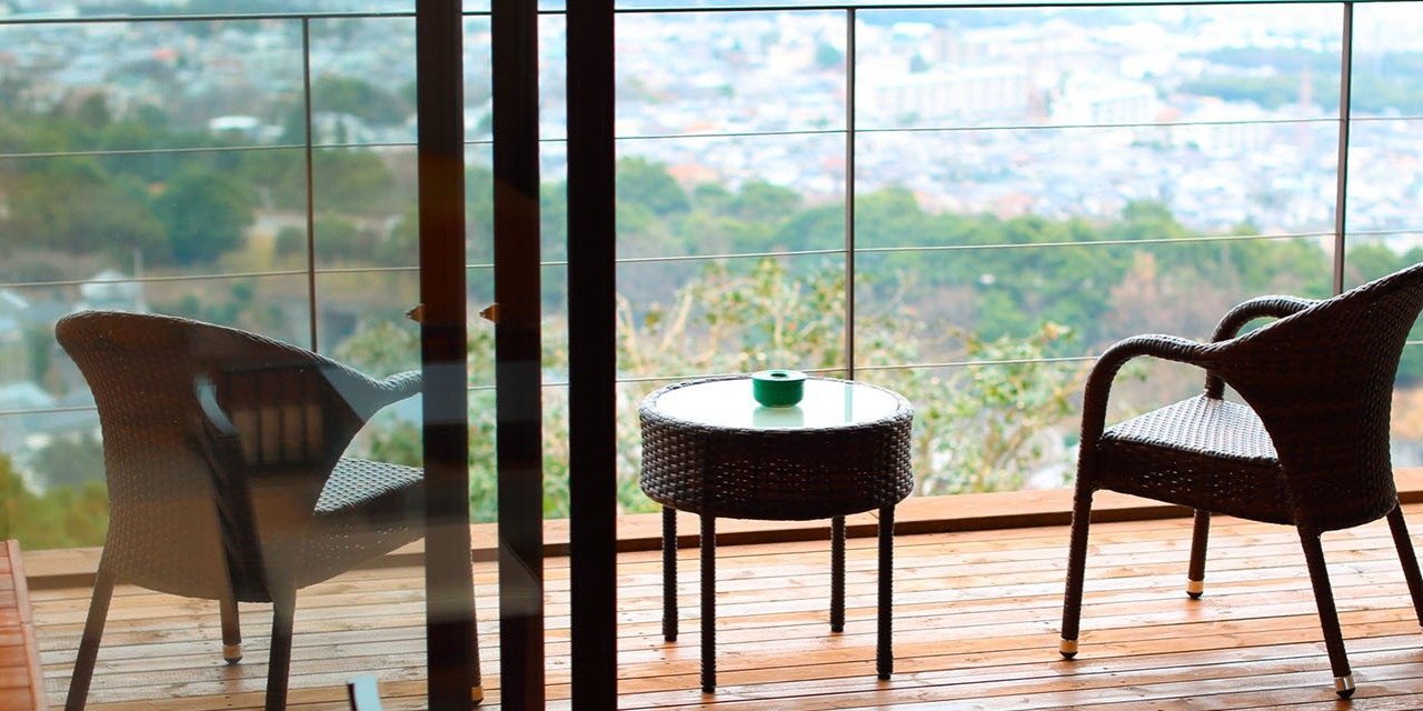 美しい別府の絶景が眼前に広がるプライベートテラス。