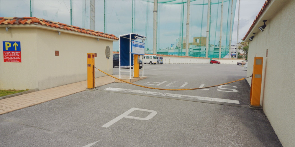 ※駐車場は駐車ロープにて施錠しておりますが、入庫時にお車が近づくとセンサーにより自動でロープが下がります。