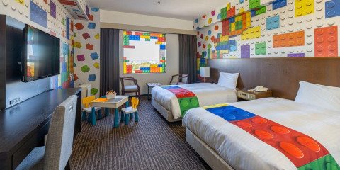まるで秘密基地!ブロック柄の壁がユニークな客室は、お子様の想像力をかきたてる特別な空間です。