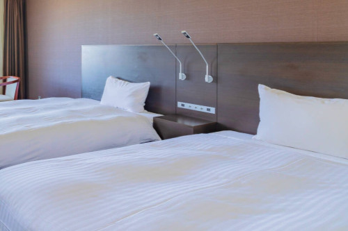 ビジネスでもレジャーでも落ち着いた空間でおくつろぎいただけるシモンズ製ベッド。贅沢な雰囲気で心地よい睡眠を体感ください。