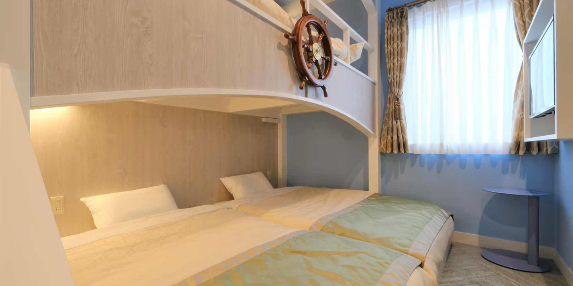 部屋内に階段がある、トリプルベッドのお部屋。プリンセスと共に「3人旅」にぴったり