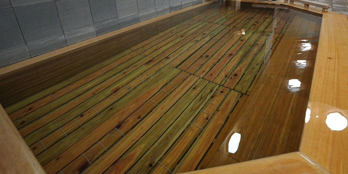 ヒノキ風呂は広々とした檜浴槽で、木の香りを感じながら手足を伸ばして思う存分お楽しみください。