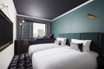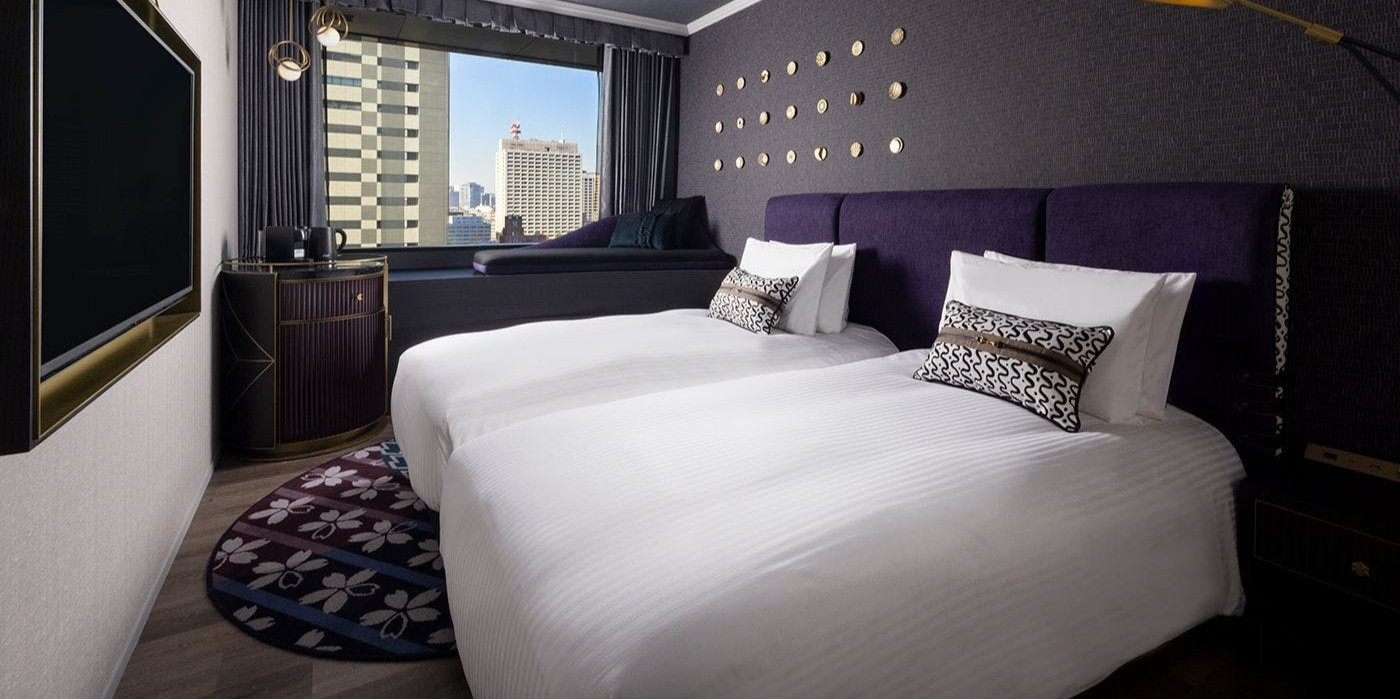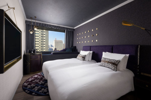 東京の街を見渡せる窓際のコーナー席やウッドフローリングを特徴としたツインの客室で、特別なひとときをお過ごしください。