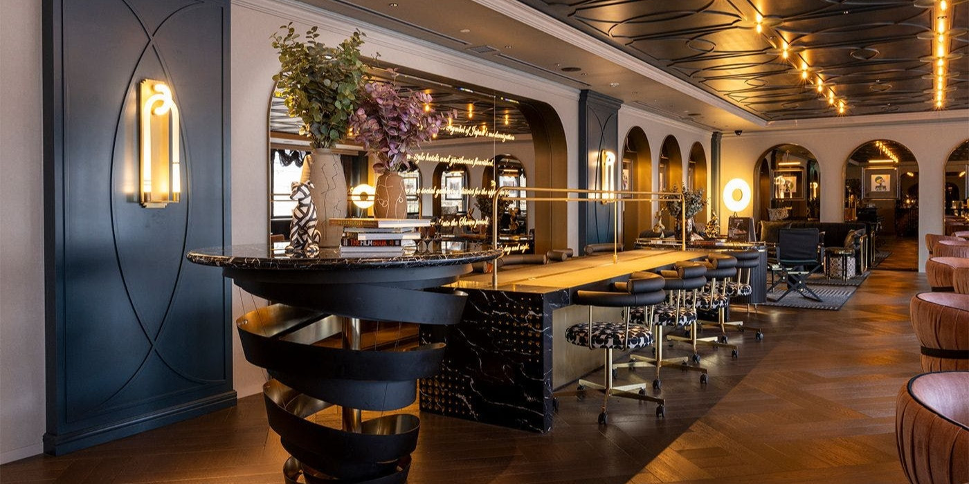 アールデコ調の客室の照明は控えめで、まるで映画館に迷い込んだかのよう。